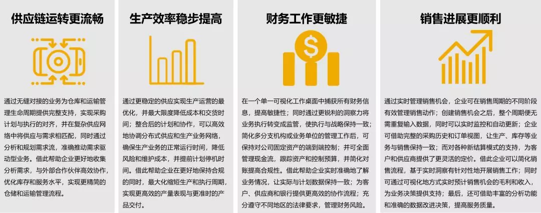 與其他行業(yè)相比,高科技企業(yè)更需要提高業(yè)務(wù)敏捷性,快速響應(yīng)全球供應(yīng)網(wǎng)絡(luò),以此滿足日益苛刻的客戶需求并降低庫(kù)存和組件成本;同時(shí)他們同樣需要設(shè)法降低制造成本,提高響應(yīng)能力和靈活性;通過更好的業(yè)務(wù)洞察力保持健康的財(cái)務(wù)狀況,為業(yè)務(wù)決策提供依據(jù);同時(shí),他們還需要在所有渠道上創(chuàng)建有針對(duì)性的銷售動(dòng)作,實(shí)現(xiàn)銷售和渠道工作的自動(dòng)化,以更靈活的定價(jià)和計(jì)費(fèi)模式滿足客戶個(gè)性化的體驗(yàn)與服務(wù)。