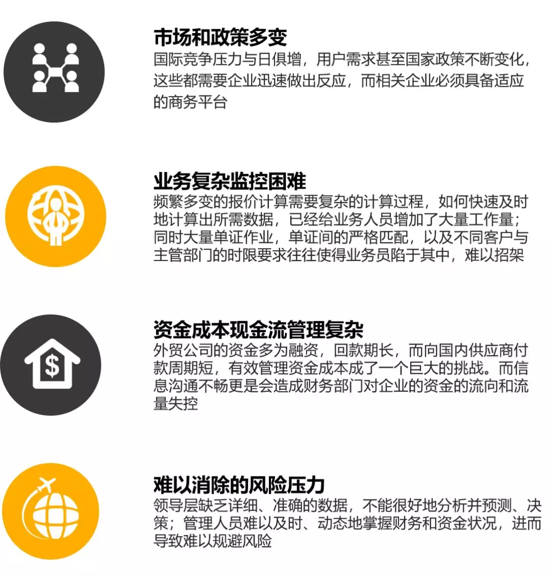 面對快速發展的勢頭和巨大的市場機遇,貿易行業的企業在內部管理,尤其是信息化管理方面,始終存在幾個難解的問題: